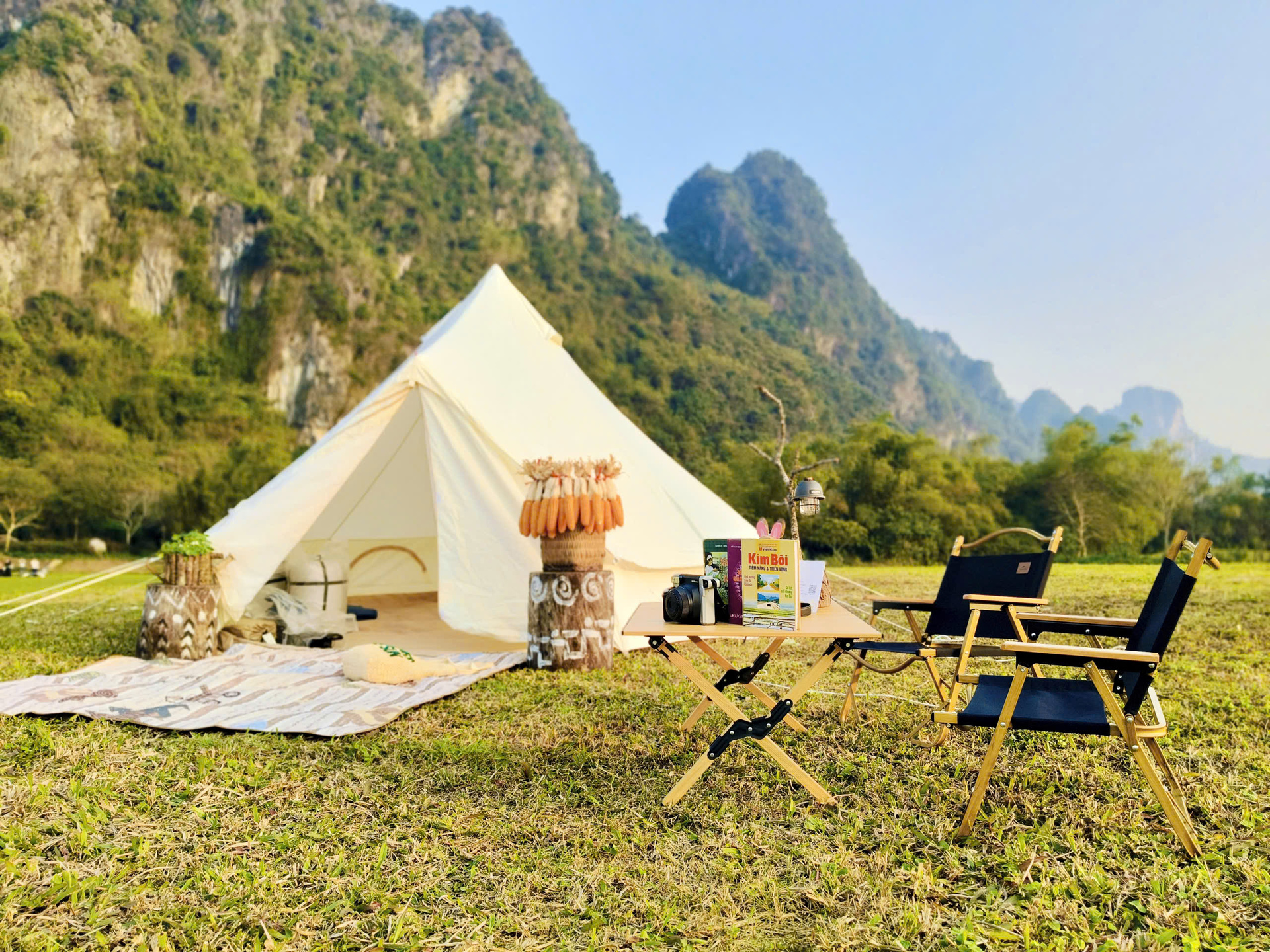 Nằm trong khuôn viên khu nghỉ dưỡng khoáng nóng Serena Resort Kim Boi, khu cắm trại mới nhanh chóng thu hút cộng đồng yêu du lịch nhờ view núi rừng “cực phẩm”, không gian thoáng đãng và cảm giác tách biệt vừa đủ giữa thung lũng xanh mướt. Bao quanh là những dãy núi trập trùng, bầu không khí trong lành và sắc xanh trải dài, khu cắm trại mang đến một lát cắt bình yên hiếm có của miền bán sơn địa Kim Bôi (nay thuộc Phú Thọ).