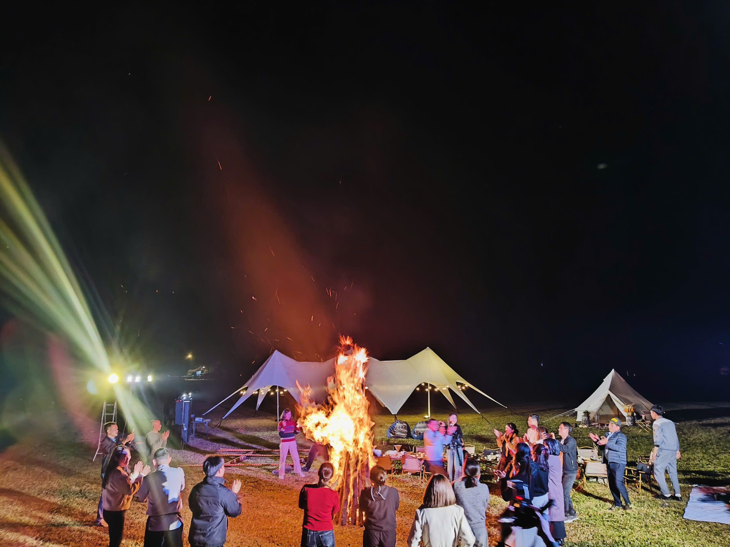 Quây quần bên lửa trại, tận hưởng không khí trong lành giữa núi rừng là trải nghiệm đáng thử.